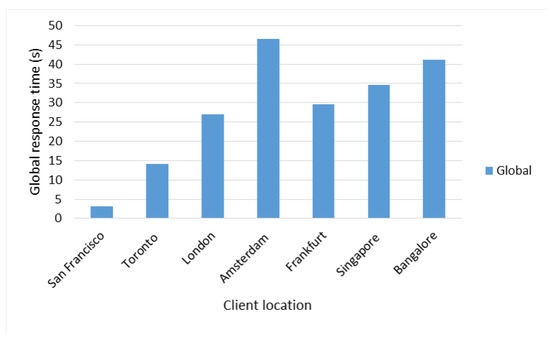 In the case of clients in Singapore and Bangalore, despite the fact that the former had a greater delay with respect to the Master Server, it obtained better average response times due to the fact that it had an remote server (Remote Server 2) located in the same city of Singapore as opposed to the client in Bangalore which had a delay of 33.67 ms with respect to the nearest remote server. The client in Amsterdam obtained the highest average response time of the entire test, given that its delay with respect to the Master Server was the highest in the entire test (193.30 ms) and with respect to its closest remote server (Remote Server I—158.56 ms), it was also the highest among clients located in Europe. By not having a remote server in the same location as the client, response times are high.