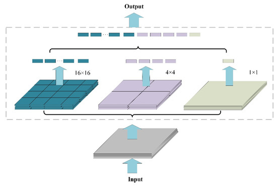 In the convolutional neural network, the fully connected layer has a fixed size requirement for the input feature map. However, during normal crop and stretch operations, the size and aspect ratio of the input image will be compressed and changed. This will cause the distortion of the input feature map, thereby losing some effective feature information and reducing the detection accuracy of the model. The SPP [24] structure proposed by He et al. can solve this problem very well. Features are extracted and pooled at different scales of the same feature map by using multilevel size space windows. In this way, the size of the input feature map is fixed, the effective information of the feature map extracted by the backbone network is preserved, and the detection accuracy of the algorithm is optimized. The structure is shown in Figure 5.