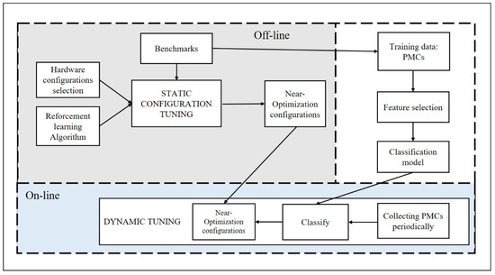 Online dynamic-tuning stage. This paper applies machine learning to predict server workload scenarios and periodically sets the corresponding optimal hardware configuration during the online dynamic-tuning stage. It collects PMCs periodically and feeds them into a classifier after a fixed time to identify the current workload scenario. Once it recognizes that the scenario changes, the near-optimization configuration is switched in real-time.
