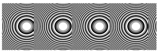 Example of DOE using an off-axis Fresnel lens pattern (i.e., focusing with an axial shift that can be integrated) for four positions.