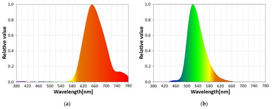 where A is the sensitive area of the PIN photodiode, is the emitter’s radiant intensity, is the optical filter’s transmission factor, g(ψ) is the optical gain obtained when collimation lenses are used, and the exponent determines the power loss with the distance. It should be noted that H(0) = 0 whenever . Because the radiant intensity can be considered a generalized Lambertian transmitter, it can be determined based on the relation: