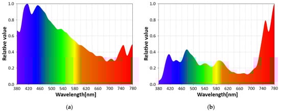 Another aspect that is revealed by the spectral analyses shown in Figure 9 is related to the effect of the sunlight at the VLC receiver level and also to the effect of the vehicle’s tinted windows on the SNR level. As is well known, sunlight has a different spectral distribution with respect to the season, moment of the day, and presence or absence of clouds. Figure 9a shows the spectral analysis at the moment these experiments were performed, and Figure 9b shows the spectral analysis inside the vehicle. As one can see, the vehicle’s window treatment acts as an optical filter, significantly reducing the influence of the optical spectral components whose wavelengths are lower than 620–640 nm, improving the SNR at the VLC receiver level.