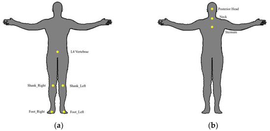 The performance of fall risk assessment approaches can be affected by sensor locations. Figure 6 summarizes the recommended and not recommended sensor locations based on the included articles. Taking IMU as an example, Howcroft et al. identified that sensor data collected from regions near the center of mass, such as the lumbar and waist, were superior for identifying fall risk compared with other locations, which explained why a sensor placed on the lower back showed higher sensitivity than one placed on the sternum [63]. It should be noted that posterior head, neck, and sternum are not recommended for placing sensors based on the existing literatures. Howcroft et al. [26] reported that the predictive model based on a neural network and sensor data collected from head, pelvis, and left shank accelerometers achieved similar performance compared to the model with the data from pelvis only. They also identified the best model integrating SVM, ST assessment, and Relief-F feature selection without data collected from posterior head [34]. The fall risk assessment model with sensor data collected from the sternum region may result in poor performance on sensitivity. For example, low sensitivities of 48.10% and 56.0% were obtained by placing sensors on the sternum [25,43]. Although using deep learning-based method with the feature of angular velocity collected from the neck achieved a high sensitivity of 86%, the approach was not recommended given the fact that most participants feel uncomfortable when attaching the sensor to their neck [52].