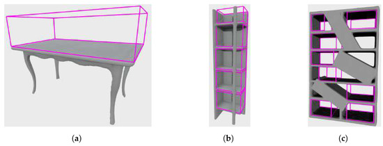 - Hržica, M.; Đurović, P.; Džijan, M.; Cupec, R. Finding empty volumes inside 3D models of storage furniture. In Proceedings of the 2021 Zooming Innovation in Consumer Technologies Conference (ZINC), Novi Sad, Serbia, 26–27 May 2021; pp. 242–245. [Google Scholar] [CrossRef]