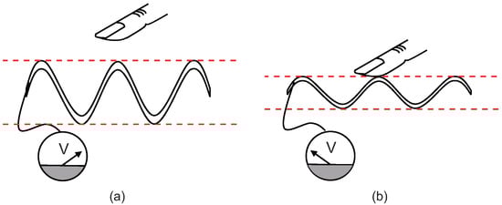 However, there is also room for improvement beyond the experiment demonstrated here. The effectiveness of the sensing scheme can benefit from flexible polymer materials with higher piezoelectric properties, which will generate a higher response to the external stimulus. Moreover, additional careful design considerations would be desirable. For instance, one can notice the consistent appearance of small bumps in the contact separation-versus-piezoelectric voltage curve in Figure 4, when the contact is initialized or breaks at close proximity to the membrane. Thus far, it is not clear why these small deviations from the expected linear sensor response occur. It might be due to the surface interaction between the contact glass and the polyimide insulating film, such as an adhesion effect; the issue of the rigidity of the sensing element as it is strongly pulled or pushed—especially when close physical contact is established—or simply insufficient clamping of both ends of the membrane. Fine and detailed optimization of the sensor parameters will certainly lead to the more reliable operation of the static tactile sensing scheme presented.