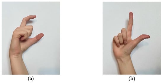 The figures below show examples of letters C and L in Polish sign language (Figure 8). The position of the fingers defining a given letter is described in Table 1.