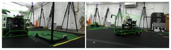 Ground truth bounding boxes (green) are automatically generated from the MiniCity’s external motion capture system. Ground truth bounding boxes can used for detector training, algorithm evaluation, and isolating downstream performance.
