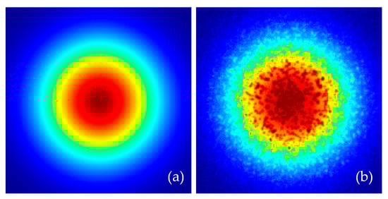 Simulation diagram of light-field distribution in front of a cylindrical lens. (a) Gaussian beam without noise; (b) consideration of speckle and environmental noise.