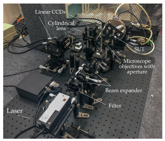 Owing to its high precision, fast acquisition, real-time visualization, and unique axial tomographic capabilities, confocal microscopy (CM) is extensively utilized in biomedical applications [6,7,8,9], materials science [10,11], optical topography [12], and geometrical measurements of industrial precision parts [13]. The lateral resolution of the confocal microscope is 1.4 times higher than that of ordinary microscopes with the same numerical aperture. The axial resolution of the confocal microscope reaches submicron levels and primarily depends on the width and sampling rate of the measured intensity profile obtained by axially scanning the sample through the focal point of the microscope objective. Therefore, CM depends on the sensitivity of the drive moving the sample. The axial response curve represents the shape of the vertical intensity profile, and if the optical element is free of aberrations, the axial response curve exhibits a -like shape [14].