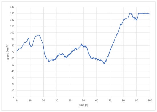 Considering the way that the acceleration values are determined by the genetic optimization algorithm one might be concerned about the driving comfort. Therefore, the speed profile of a high-priority emergency vehicle during a simulation run is plotted in Figure 7. Overall it looks very reasonable. In sections where the emergency vehicle had to follow other vehicles, the speed is jittery, but the oscillations are within small margins. Towards the end of the simulation, the vehicle reaches the speed limit of 130 km/h and is thus limited.