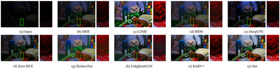 - Xu, K.; Yang, X.; Yin, B.; Lau, R.W. Learning to restore low-light images via decomposition-and-enhancement. In Proceedings of the IEEE/CVF Conference on Computer Vision and Pattern Recognition, Seattle, WA, USA, 13–19 June 2020; pp. 2281–2290. [Google Scholar]