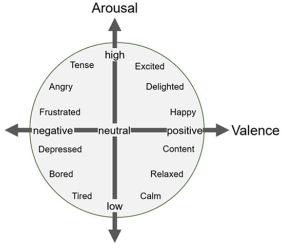 - Russell, J.A. A circumplex model of affect. J. Personal. Soc. Psychol. 1980, 39, 1161. [Google Scholar] [CrossRef]