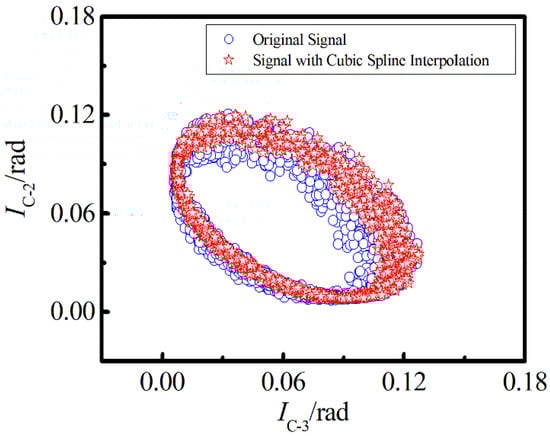 Previous studies have shown that EFA can be used to analyze the nonlinear distortion caused by LID []. In the case when the light intensity fluctuates greatly, the edge of the ellipse is more discrete. To verify the effectiveness of cubic spline interpolation, we selected the interference signals of C-2 and C-3 to obtain the Lissajous figure.