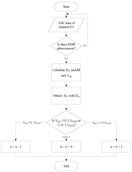 The timing jitter also leads to difficulty in determining positive integer n when the target mirror is near the dead zones. The algorithm for determining n is illustrated by Figure 4. After the whole system starts to run, two ADCs convert the input analog electrical signals from channel 0 and channel 1 to digital signals. Only when an RMR event arises, then will FPGA begin to calculate measured distance within and .