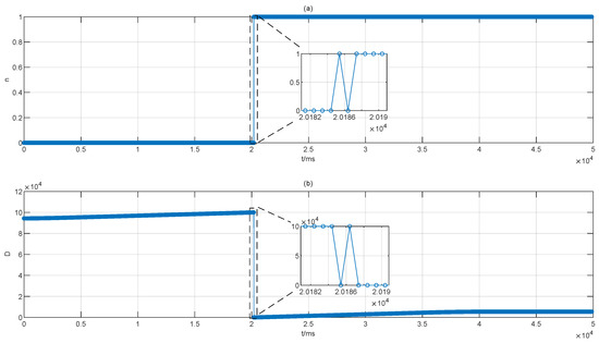 Effectiveness of the proposed signal processing unit. The target mirror is moving at the same speed. (a) Value of positive integer n which counts for the number of the non-ambiguity range. In the code, the positive integer n was denoted as n. (b)The distance between the paired R peaks and m peaks which are stored in RAM. This value was denoted as D in the code.