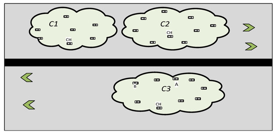 Similarly, the authors of [31] presented a clustering technique in which a gateway node is introduced as a relay node between CHs. The gateway node provides the connection between two cluster heads to increase information range without needing roadside units. This scheme is best for uni-directional traffic, and suitable for urban VANETs and unsuitable for highway environments. EEMDS also ignores the node’s direction, degrading the scheme’s performance. The work of RBO-EM [32] presents a clustering scheme in which the nodes’ numbers are reduced that can retransmit an emergency message, and linked condition reliability is employed to choose a trustworthy gateway. RBO-EM also ignores the node’s direction, degrading the scheme’s performance.