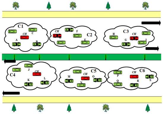 In VANETs, timely and reliable warning messages are as critical as accurate collision detection. For VANETs, several clustering techniques have been suggested. The authors of [10] presented a clustering technique for VANETs called the Distributed Multichannel and Mobility-Aware Cluster-based MAC Protocol (DMMAC). The DMMAC considers speeding a significant aspect while forming the cluster to improve stability, using a fuzzy framework to measure vehicle speeds. Furthermore, the DMMAC uses a temporary cluster head idea when the original cluster head is unreachable. For every cluster, the protocol chooses a secondary CH. These protocols [10,11] are helpful in high-mobility areas, although primary cluster heads frequently change as topologies change. As a result of the frequent switching generated by the primary CH, the secondary cluster head’s efficiency is diminished. Therefore, the clusters become unstable.