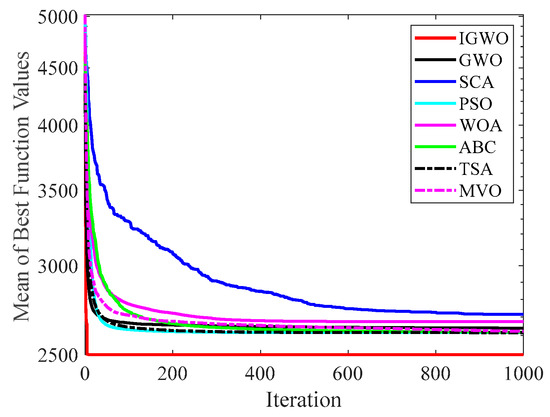 4.2. Comparison of IGWO with Other Meta-Heuristic Algorithms