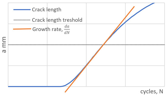 The working procedure of specimen testing has defined specific requirements for the shape of the S-N curve, changing with the length of the crack. In these cases, the length of the crack needs to be measured periodically during the test. Given stress level relates to the crack length or its growth rate (Figure 2).