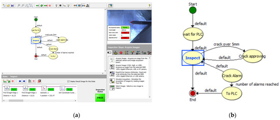 (a) Basic schemes of system states in the NI Vision Builder environment. (b) The detail of state flow diagram.