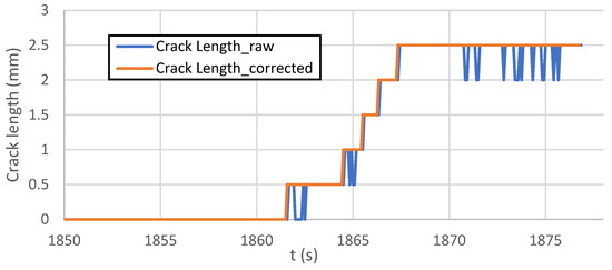 The crack confirmation process starts once the measured length of a crack reaches the setpoint value (in our case, 5 mm).