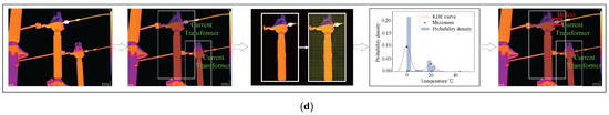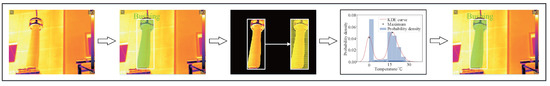 Figure 8 shows the process of the normal bushing infrared image detection. In the fourth column, the temperature probability density distribution of the bushing has only two local maxima, which reflects that the substation equipment is no defect. This demonstrates that the TDDM is effectively applied in detecting normal substation equipment.