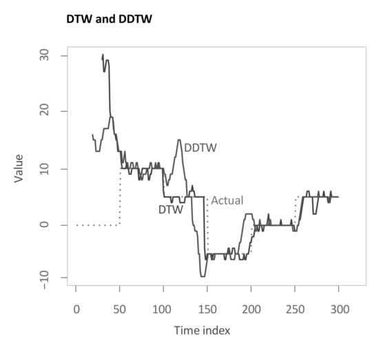 - Keogh, E.; Pazzani, M.J. Derivative dynamic time warping. In Proceedings of the 2001 SIAM International Conference on Data Mining, Chicago, IL, USA, 5–7 April 2001; Society for Industrial and Applied Mathematics: Philadelphia, PA, USA, 2001; pp. 1–11. [Google Scholar]