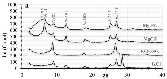 - Moore, D.M.; Reynolds, R.C., Jr. X-ray Diffraction and the Identification and Analysis of Clay Minerals, 2nd ed.; Oxford University Press: New York, NY, USA, 1997. [Google Scholar]