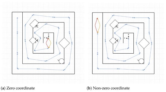 An optimization is used to calculate the most likely pose from the nodes collected, to get the most probable graph. To use the optimization methods, it is necessary to define an error function between the measurements obtained. Assuming is the nodes vector in the graph, and the odometry between nodes and . A border is produced, with an error expression that meets the Equation (3).
