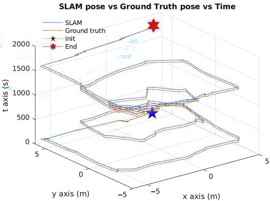RTAB-Map implementation is based in a simultaneous processing. For graph-based SLAM, as the map grows, the processing, optimization, assembly, and CPU load also grows. Reason why, RTAB-Map stablishes a maximum response time at SLAM output, once it has received the sensors data [23,57]. As the latest version of the algorithm admits 2D and 3D LiDAR sensors and is capable of performing visual SLAM, the RTAB-Map 2D LiDAR based SLAM option [23] was used for the tests performed in this work.