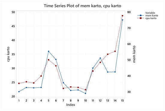 Finally, CPU and memory usage were recorded using Python psutil library [31]. These both metrics are mathematically represented by averaging the whole measurements taken during the test run, and their units are percentage of for CPU usage, where a number beyond 100% means it is using more than a single core, and MB for memory usage.