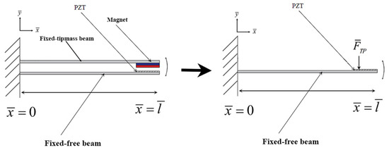 The theoretical CVEH system is shown in Figure 3, one of which is a fixed-free beam with a tip mass (magnet), and the other is a fixed-free beam with a PZT patch. The CVEH system proposed in this study directly exerts force () on the piezoelectric device through the effect of slapping, which will enable this design to break through the current bottleneck of energy conversion in the vibration energy harvesting system, and exert a greater function of the VEH system.