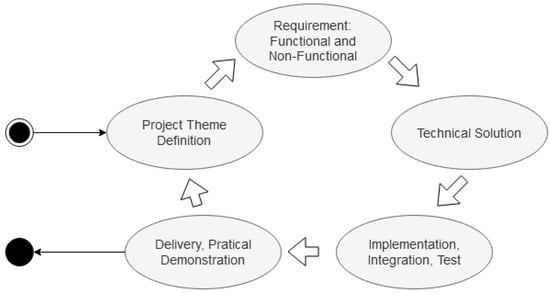 In the project theme definition, quality parameters were considered in the scope of the project; students identified themes and adequate sizes, in terms of complexity and viability, using the MVP techniques, with the help of professors and the lab team. Some tools used in this phase were the Osterwalder Value Proposition Canvas [25] to make students think about the usefulness of the project; an example of a project scope definition is a decision regarding how many different modules the proposed architecture has.