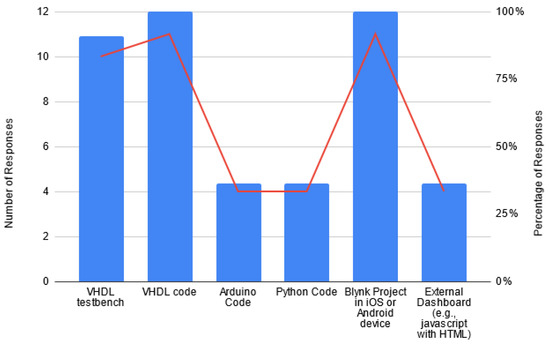 Using a virtual command terminal with a mobile interface was a proposal that 88% (22 out of 25) students liked. In this sense, the students provided constructive feedback such as “There were minor configuration issues (which could be resolved quite smoothly). There was a slight delay in the execution of the terminal commands, which raised doubts as to whether the commands were correctly executed” and “I thought it was nice to use the FPGA through the terminal, it was a good experience, but I think I still prefer to have the virtual buttons/switches”. Another student also commented on the IoT Platform usage with constructive feedback: “At first I thought Blynk was unnecessary and I didn’t like it, but now I like it (especially when we use it to control the servo motor, it’s fun). Regarding the CLI (command-line interface) application, it could give more feedback on bugs and when things are in progress. It’s important to handle error cases, too. In the early classes, there were times when unhandled errors stopped the script from running”.
