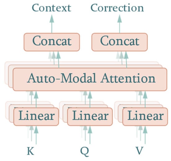 Similar to SDPAM, AMAM takes queries, keys, and values as inputs. However, if treated as a black box, there is a difference in the output, where AMAM adds another output, i.e., the correction value. This component represents the correction value added to the predicted AQI in the first-stage prediction. As can be seen in Figure 4, keys, queries, and values are projected to the hidden dimension, , of the attention mechanism by a learnable linear layer:
