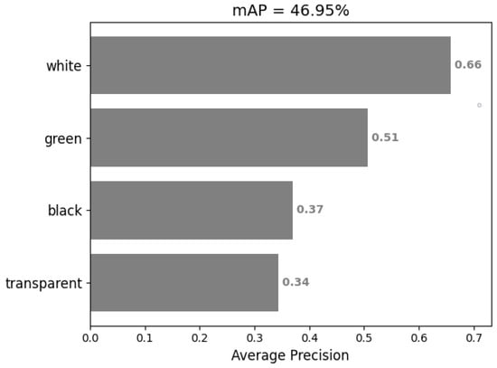 In general, the detection performance has been improved. So, we then ran the algorithm on the test set and used the mAP index to evaluate the detection performance, and the results are shown in the Figure 9. The mAP is 46.95%, which is obviously not high enough to accurately count the numbers of different kinds of cups.