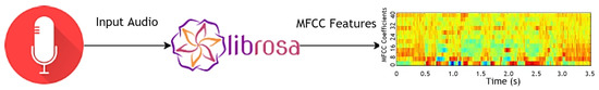 ZCR is the rate at which the audio signal crosses zero, which represents the noisiness and the spectral characteristics of the signal [90]. We extracted the features for each audio clip at a sampling frequency of 22,050 Hz using a feature extraction layer that was built using the “Librosa” audio processing python library. Audio feature extraction using MFCC is graphically shown in Figure 3.