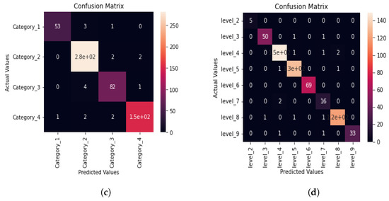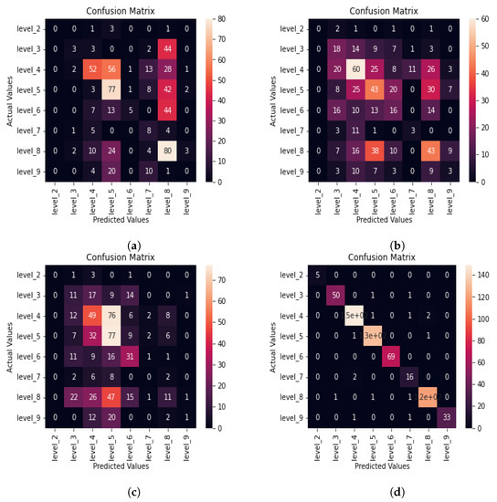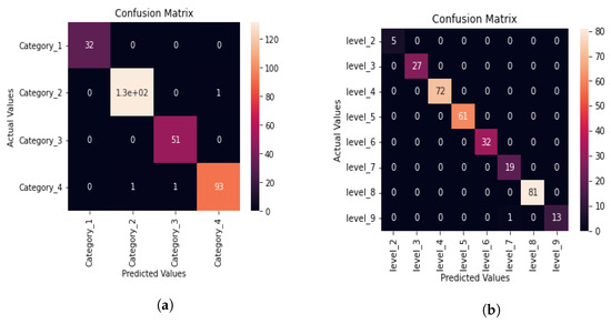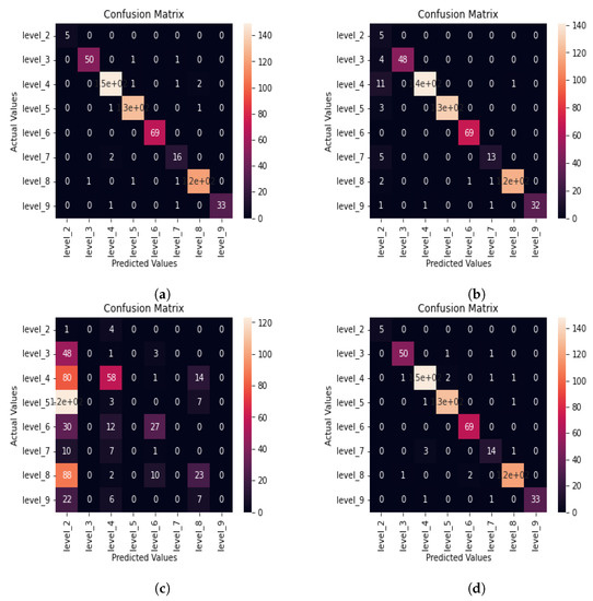According to the distribution of the data per category as evident from Table 5, this is not a balanced classification problem, but there are enough data points for each category to complete the classification task. There are more audio data for each category for 10 s than for 20 s. When we split the same audio data into 10 s frames due to the 10 s time frame, more audio data frames can be obtained.