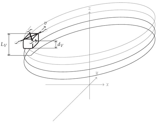 - Determine maximum speed in that direction:where is the maximum acceleration in the specified direction (motion model limit) and is the braking distance-distance required for the radar platform to stop when moving with the maximum speed:where is the maximum velocity in the specified direction (motion model limit).