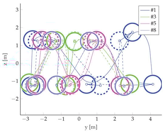 The next step is to perform the optimization, where the cost is determined according to (38), and the variables are the y and z coordinates of the waypoints. The optimization was performed in MATLAB using fminsearch [19], that is, using the derivative-free Nelder–Mead simplex algorithm [18]. The optimization was repeated ten times for different starting points. The results are summarized in Table 3.