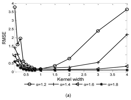 4.1. Simulations with Different Kernel Widths for the Proposed Algorithms
