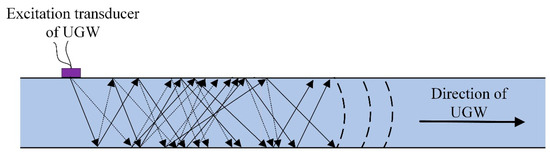 Schematic diagram of the propagation of UGWs in a plate structure.
