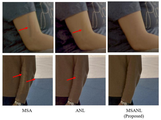We performed an ablation study of the proposed network structure and analyzed the results. We compared the proposed MSANLnet with the following variant models to identify the importance of the individual components. Table 2 shows the quantitative comparison among the baselines and the proposed MSANLnet.