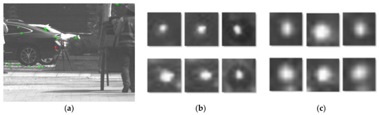 Sample images of a partial dataset. (a) Active image labeled with a true target in the dataset, (b) part of the true target dataset, and (c) part of the false target dataset.