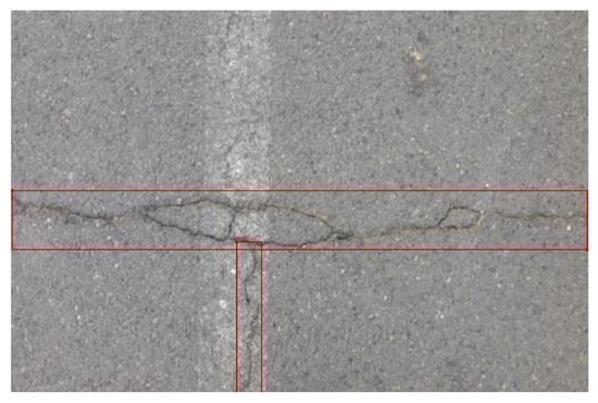 Figure 7 shows the labeling of the dataset, and both the training data and testing data are labeled with rectangular boxes. If the crack feature in one image is shown in Figure 7 with multiple cracks in vertical and horizontal directions, multiple rectangular boxes are used to label it.