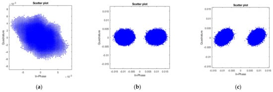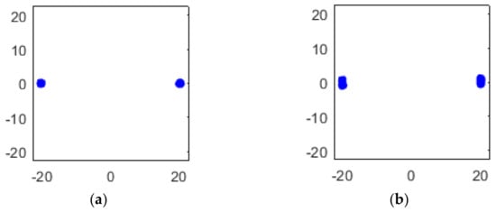 Simulated constellation diagrams of with different are shown in Figure 6.