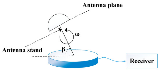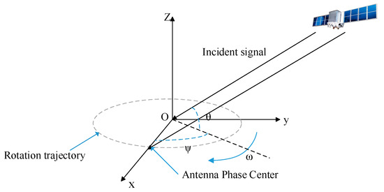 in Figure 1 means the angle between the antenna stand and the horizontal plane. Based on this, this paper further studies a rotating single-antenna detection model based on carrier-phase difference. The pitch and azimuth angles of the satellite incident signal are used to represent the carrier-phase value. Its model is shown in Figure 2.