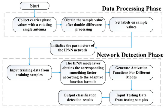 Using the IPNN model constructed to detect spoofing signals is shown in Figure 4. There are six procedures in the whole process: