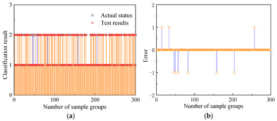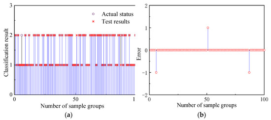 IPNN test effect diagram: (a) IPNN test data classification results; (b) IPNN test data detection error.