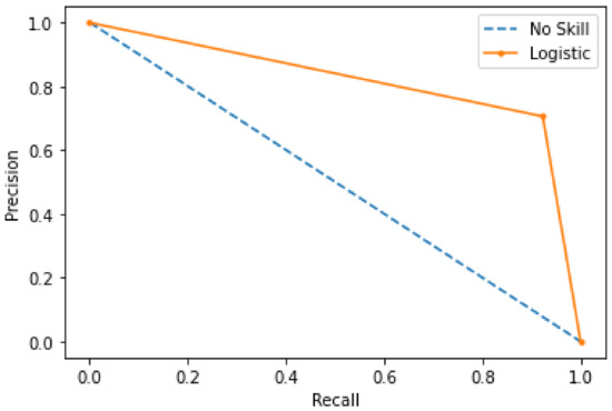 The precision–recall curve of the XGboost model is visualized in Figure 7. This curve predicts the harmonic mean of both precision and recall. It is seen that a very slight decrease is observed, starting from 1. As soon as the recall value reaches more than 0.9, there is a sudden drop in the precision value. Figure 8 shows the accuracy when XGBoost is used. It shows that the highest peak of 0 to 1 indicates that the model achieves optimal accuracy in classifying blockchain transactions as legitimate or malicious. After reaching the maximum value of 0.9, the accuracy remains constant throughout the training.